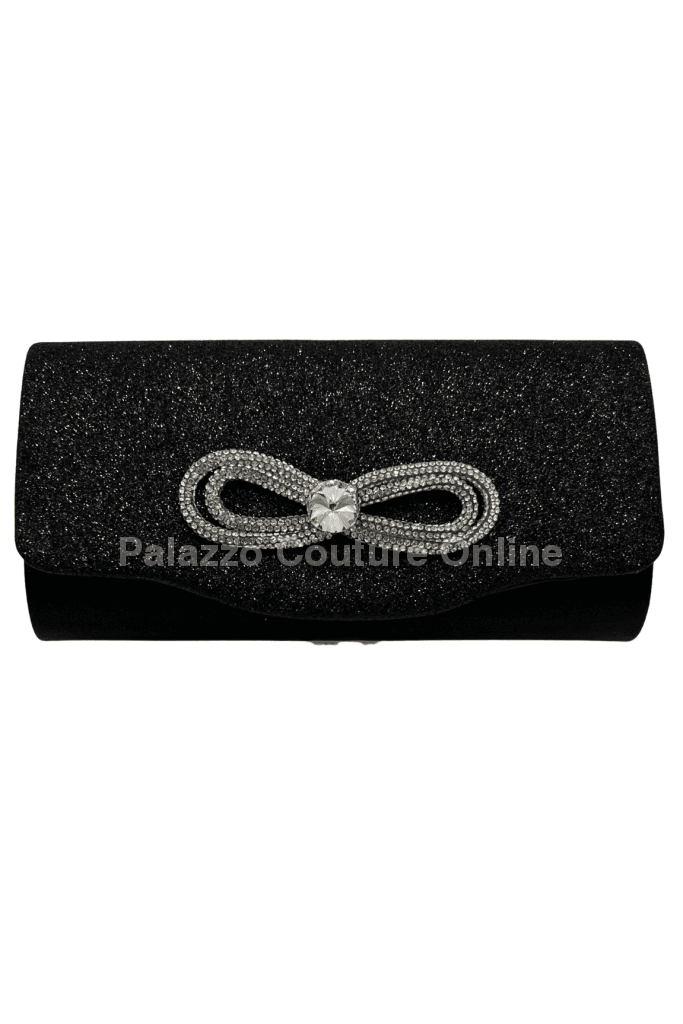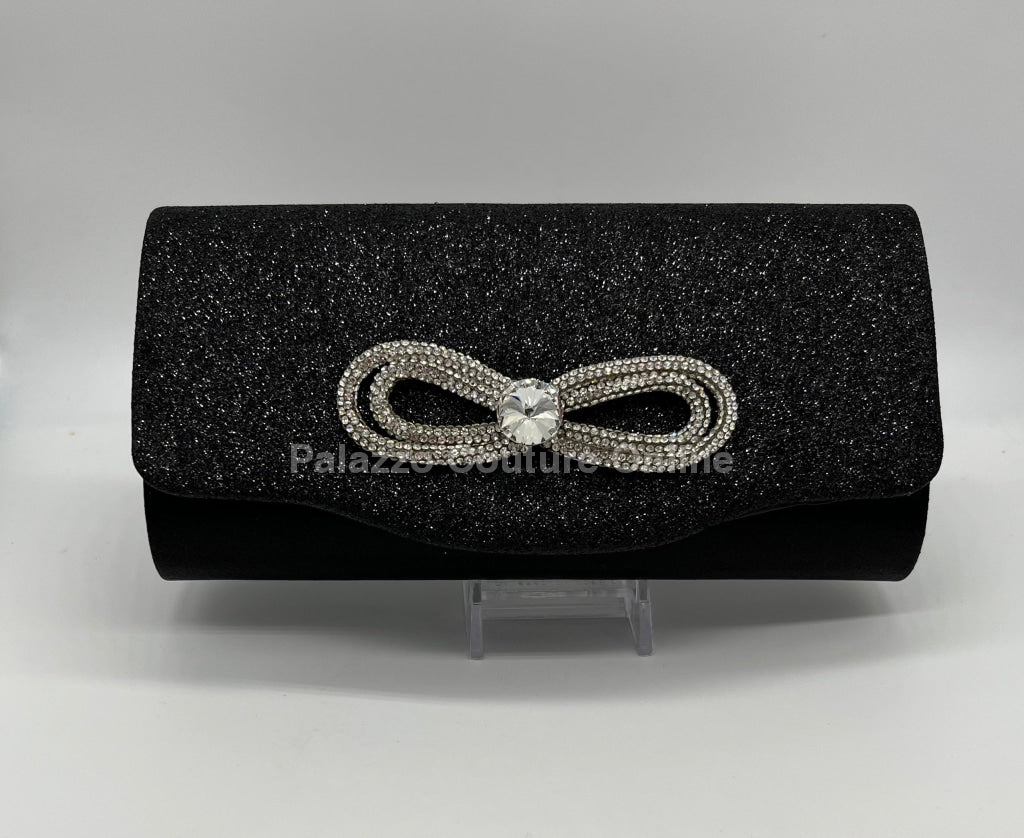 Infinity Glitter Rhinestone Bow Clutch (Black)