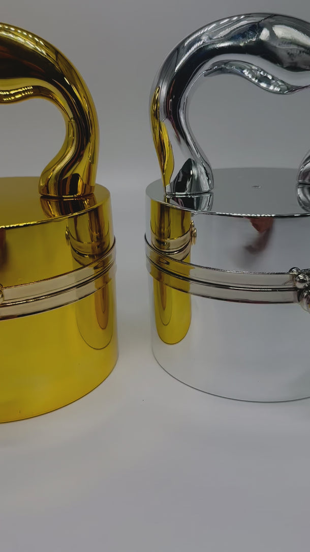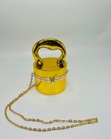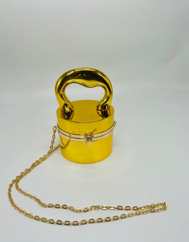 - Introducing the Luxe Metallic Gem Box Clutch, a stunning accessory that combines elegance with functionality. This uniquely designed clutch features a smooth, glossy finish and a distinctive handle, making it a standout piece for any occasion. Its compact box shape is perfect for storing your essentials securely, while the sturdy clasp ensures everything stays in place. Whether you’re attending a glamorous event or a night out, this clutch adds a touch of sophistication and dazzle to your outfit.