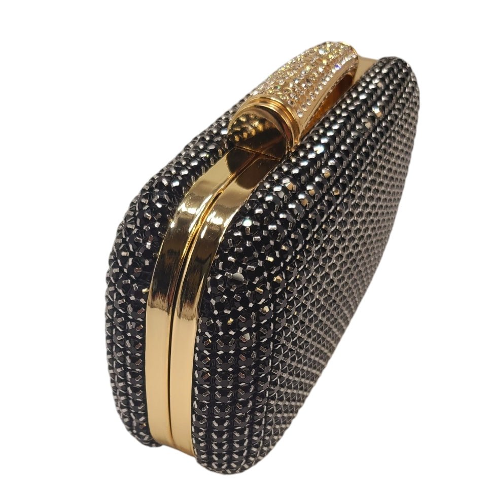 Elevate your evening look with the Radiant Elegance black crystal clutch, a refined accessory crafted for luxury. Designed with a shimmering crystal-studded exterior and a beautifully sculpted metallic clasp, this clutch is a statement piece for any formal affair. Whether you're attending a gala, wedding, or red-carpet event, it effortlessly adds a radiant touch to your ensemble.