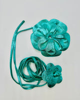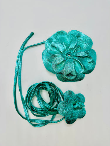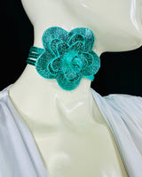 Floral Radiance Convertible Leather Wrap Belt & Choker (Turquoise)