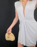 Elegance Enwrapped Sleeveless Mini Dress (white)