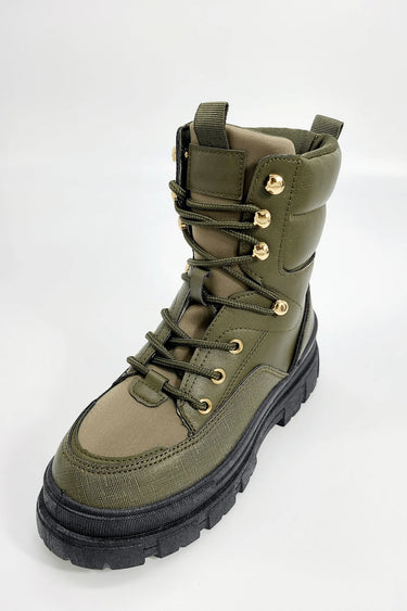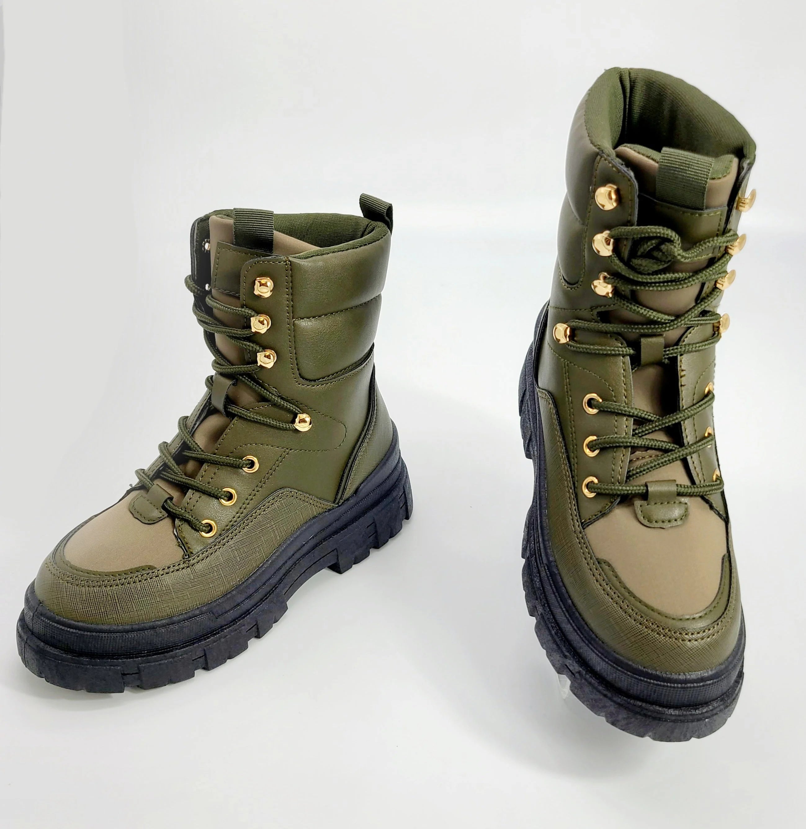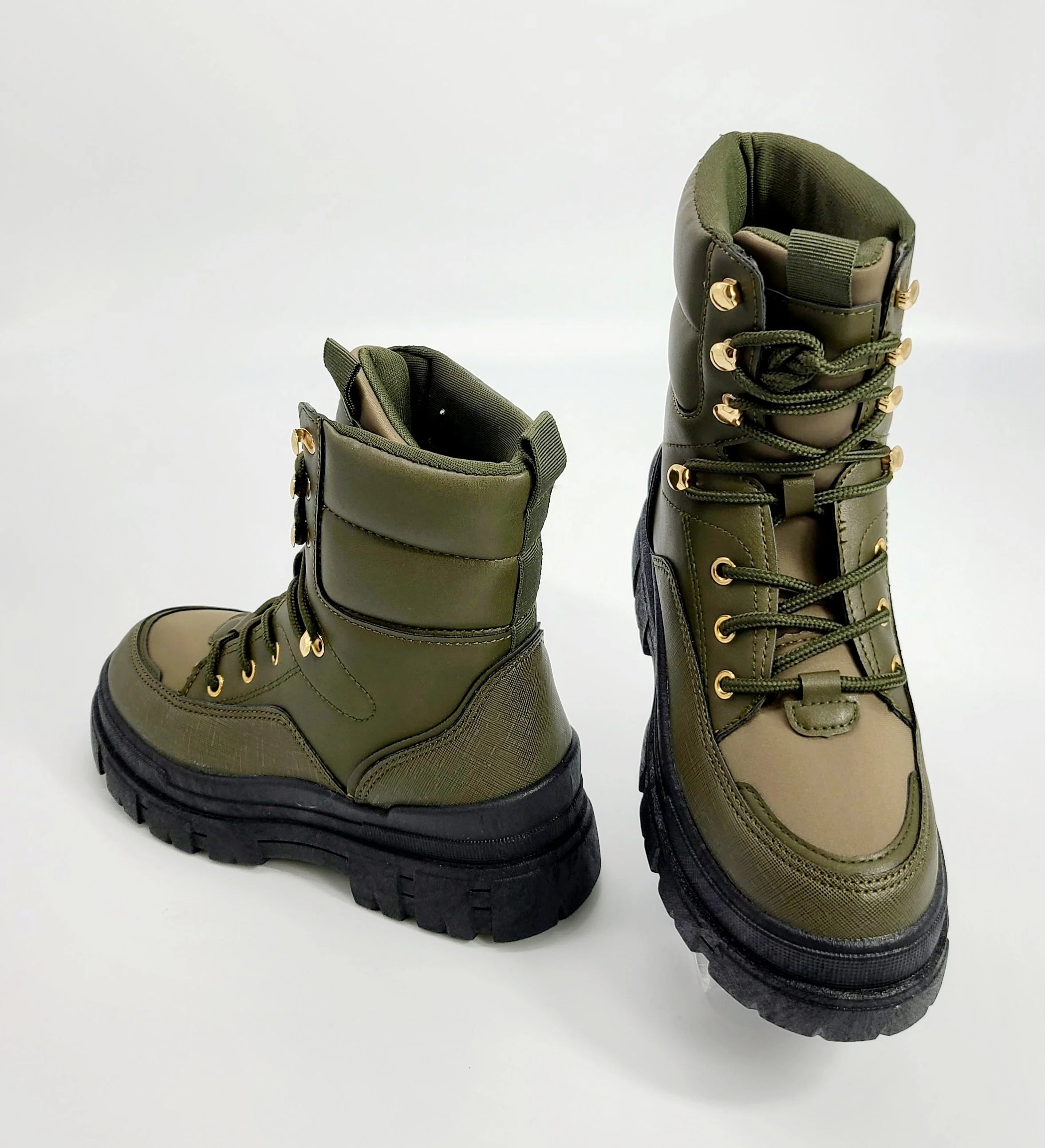 Make a statement with the Winter Princess Kate Combat Boots (Olive). These combat boots bring edgy military-inspired style to any outfit.
