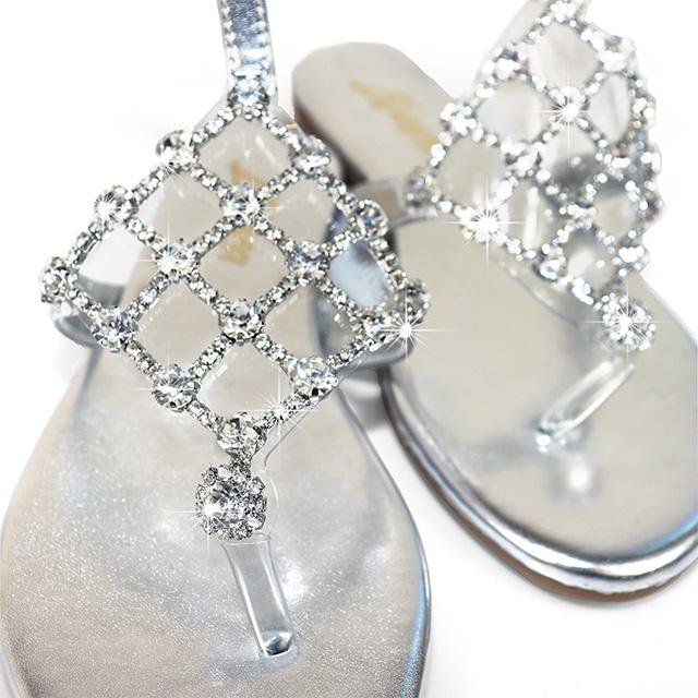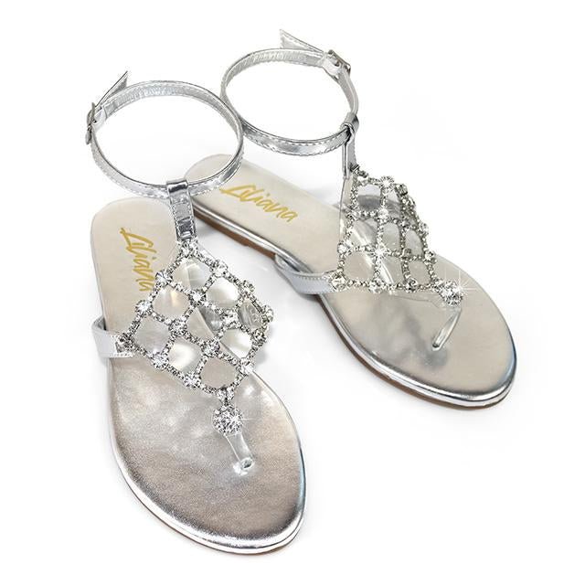 Marlo Rhinestone Faux Jeweled Flat Sandals -Silver