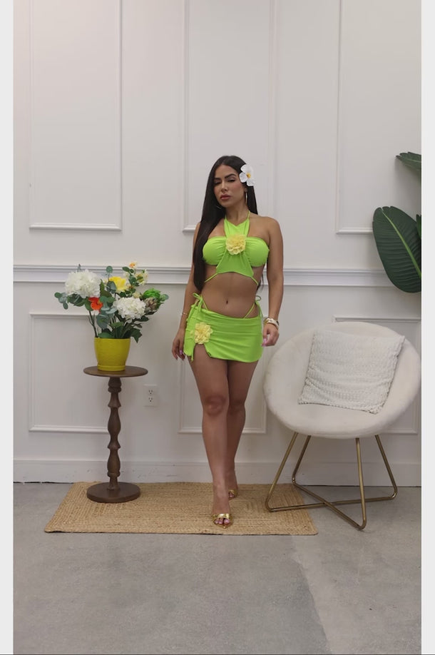 Flora Fuego 3-Piece Flower Bikini Set – Lime