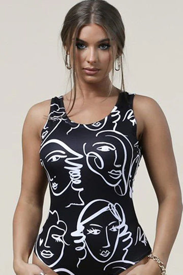 Round Neckline Sleeveless Fitted Bodysuit (Black)
