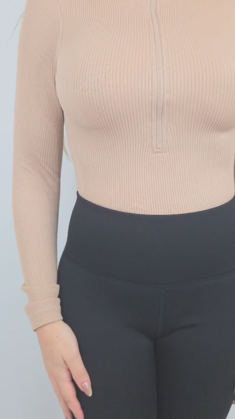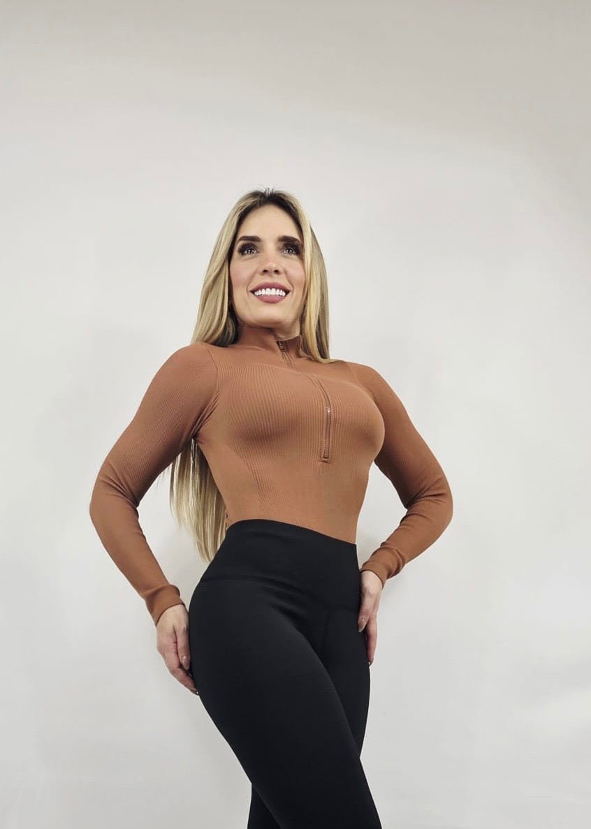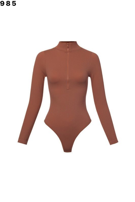 Upgrade your basics with this high-neck long sleeve bodysuit, featuring a ribbed design for a sleek and comfortable fit. The front zipper detail adds functionality and a stylish edge, making it versatile for layering or wearing solo. Crafted from a stretchy blend of 92% nylon and 8% spandex, this bodysuit hugs your curves while offering all-day comfort. Available in multiple shades to suit any wardrobe.