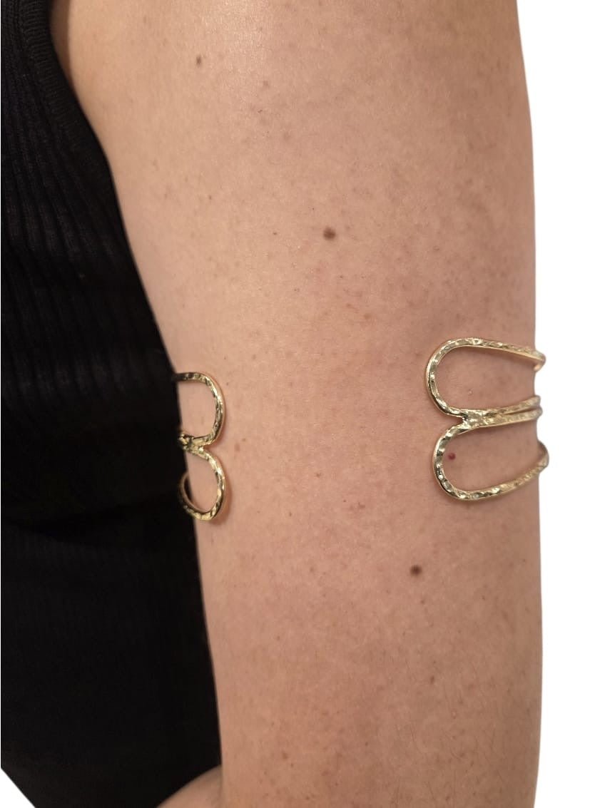 An effortless statement of modern elegance, the Golden Waves Luxe Cuff is crafted from gleaming, hammered gold-tone metal, artfully shaped into fluid, interlacing lines. The open design embraces the wrist with an airy, sculptural silhouette, offering both comfort and sophistication. Worn solo or layered, this cuff evokes understated luxury and timeless style — a versatile accent that transitions seamlessly from daytime chic to evening glamour.