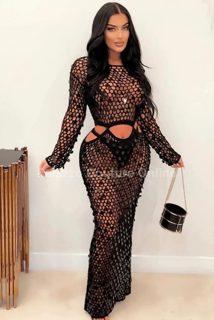 Look stunning from beach to bar with the Make You Feel Cover Up Maxi Dress (Black). This beautiful cover up maxi dress brings floor-length beach elegance to your vacation wardrobe.