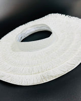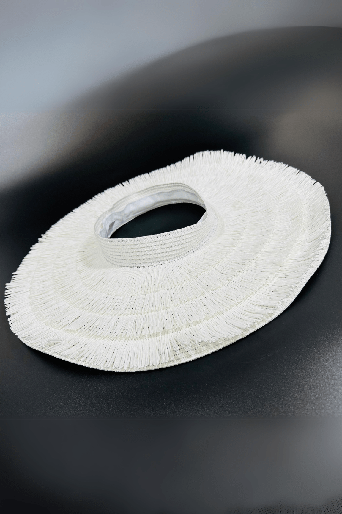 - Chic and stylish sun hat with a dramatic fringe edge, offering a contemporary spin on the classic wide-brim design. It’s crafted from woven straw, providing both UV protection and a bold fashion statement. Ideal for beach outings or as a standout accessory for outdoor summer events, this hat combines function with high fashion appeal.