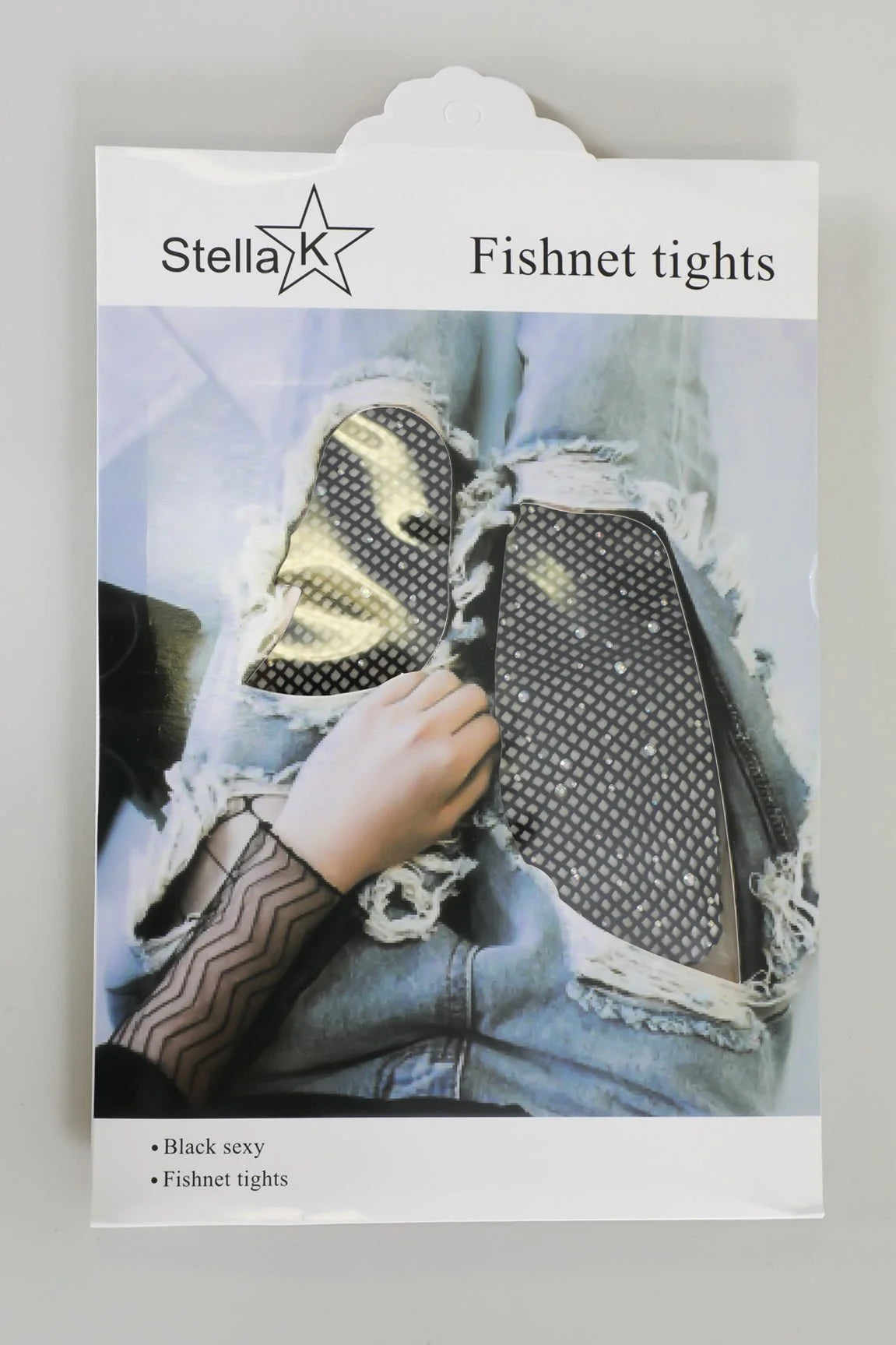 - Crafted from sheer black fishnet and delicately decorated with shimmering rhinestones, these rhinestone tights deliver a bold yet refined finish that catches the light beautifully