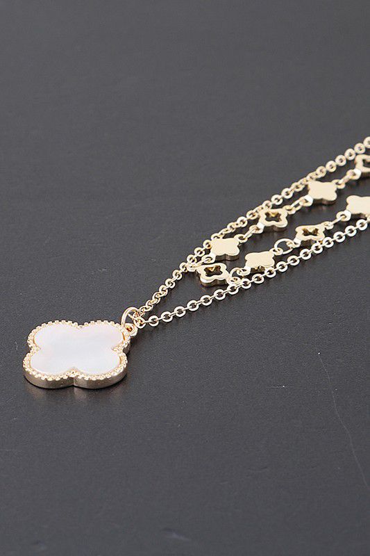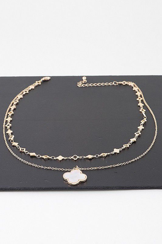 Luxe Clover Double-Layer Clover Necklace in Gold Cream Finish