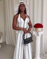 Sleek, structured, and designed to define—this wide-leg jumpsuit features bold contrast piping, a flattering sweetheart neckline, and a tie belt to cinch the waist. Whether in a dark or light base, the Monaco Linea delivers timeless sophistication for your next elevated outing.