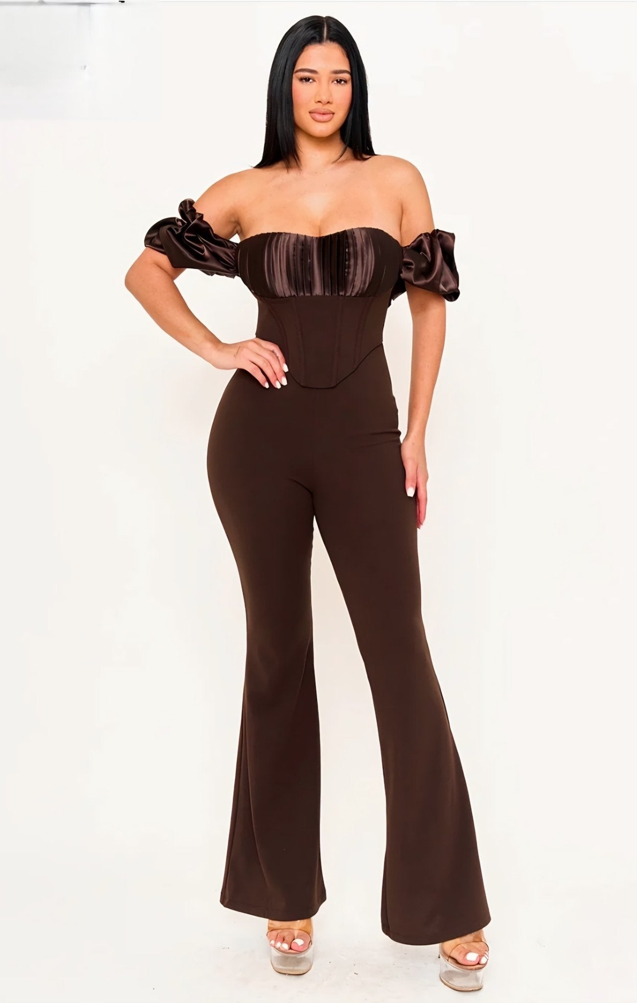 Midnight Muse Off-Shoulder Corset Jumpsuit - Chocolate