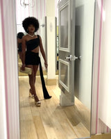 Sunshine One-Shoulder Lace Cutout Mini Dress - Black