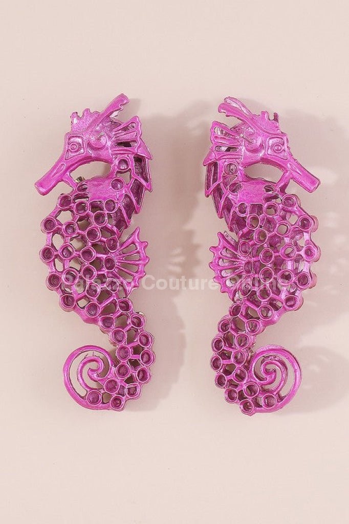 Large Seahorse Full Rhinestone Drop Earrings(Fuchsia)