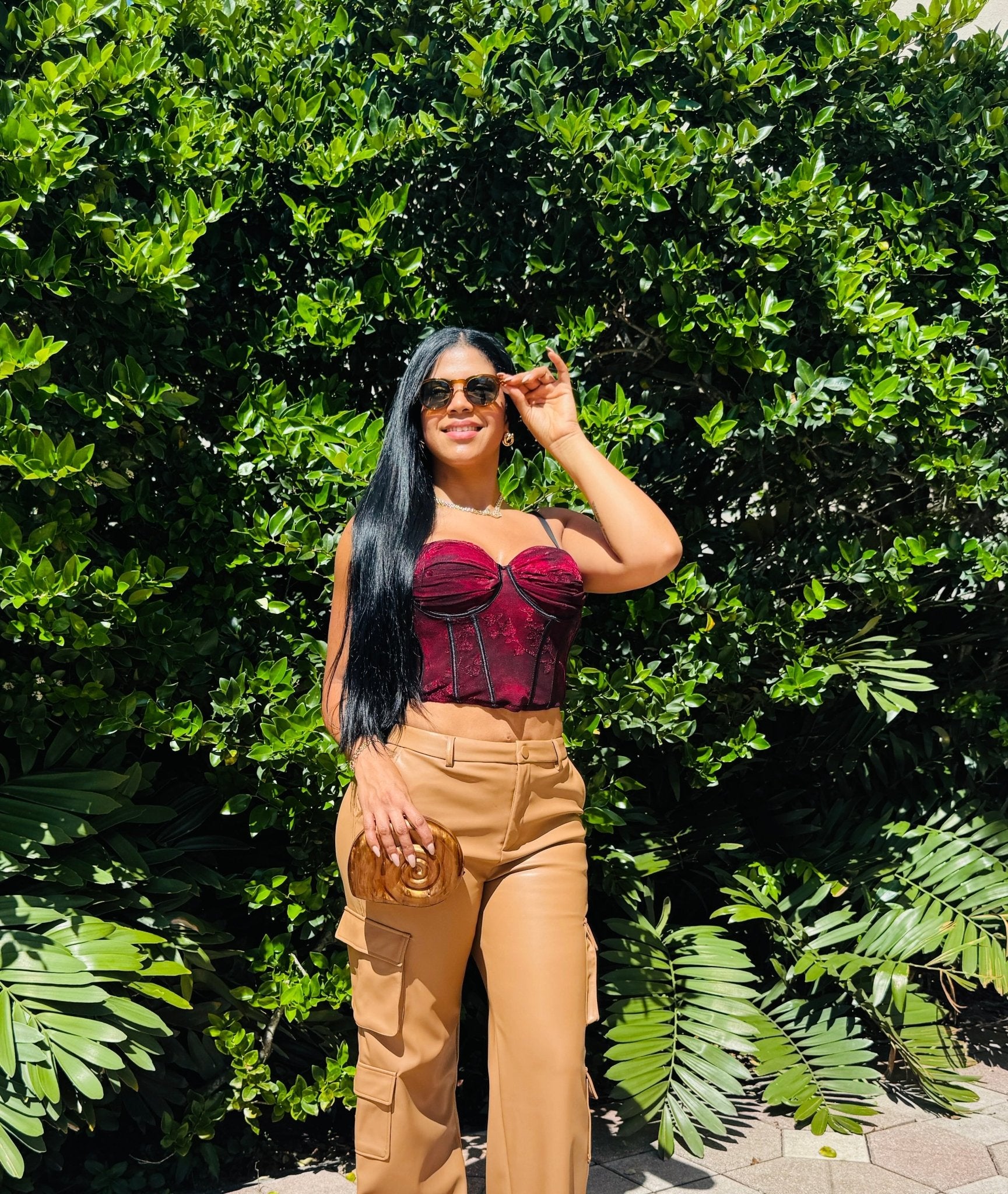 Command attention in the Velvet Desire Lace Corset, a captivating blend of structure and sensuality. Designed with a romantic floral velvet overlay and boned seams for a sculpted hourglass shape, this piece accentuates every curve with confidence. The adjustable shoulder straps and back hook closure ensure a personalized fit, while the sheer mesh detailing adds a modern touch of allure. Pair it with tailored leather pants or a sleek skirt for an unforgettable statement look.