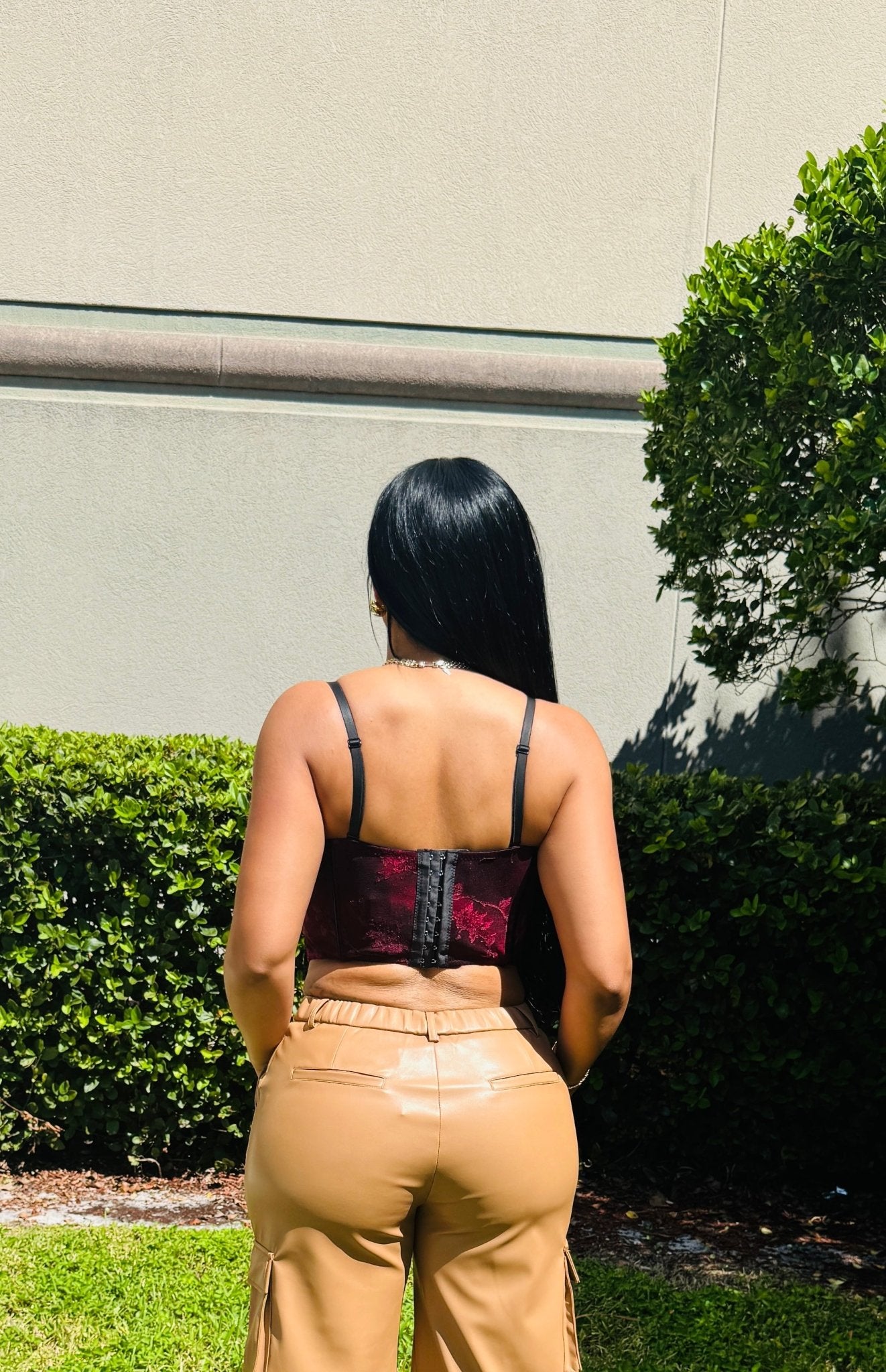 Velvet Desire Lace Corset - Dark Cherry Combo