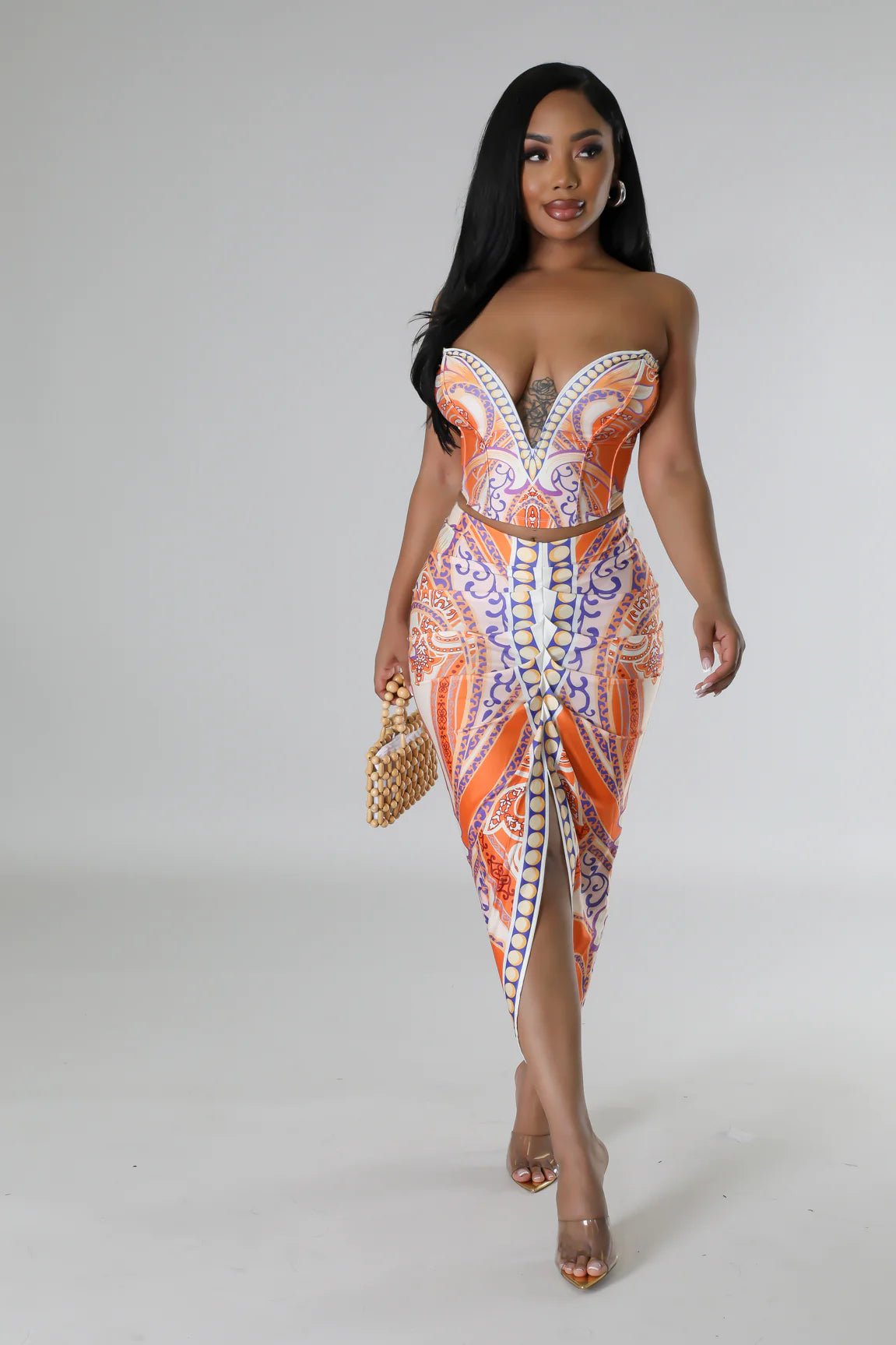Flirty Date Skirt Set (Orange)