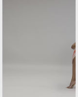 - Model wearing 4" heels