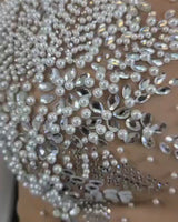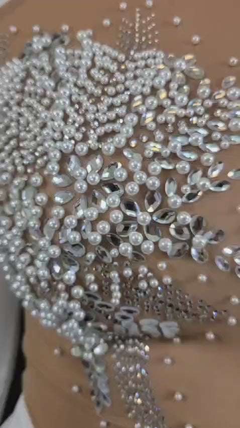 - Stretchy Fabric with Rhinestone and pearls decoration