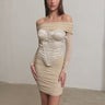 Noir Silhouette Ruched Mini Dress And Corset 2PC (Champagne)