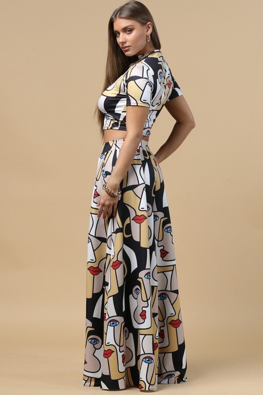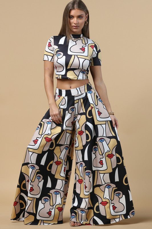 Facelips Print Wide Palazzo Pants