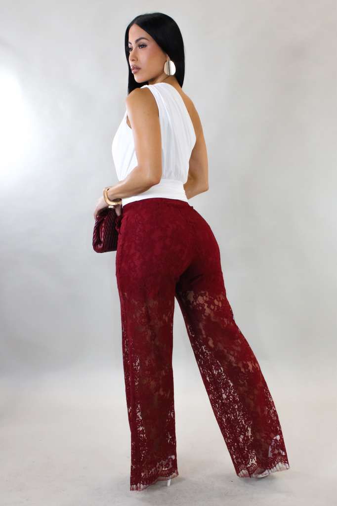 Luxe Sheer Lace Wide-Leg Pants - Wine
