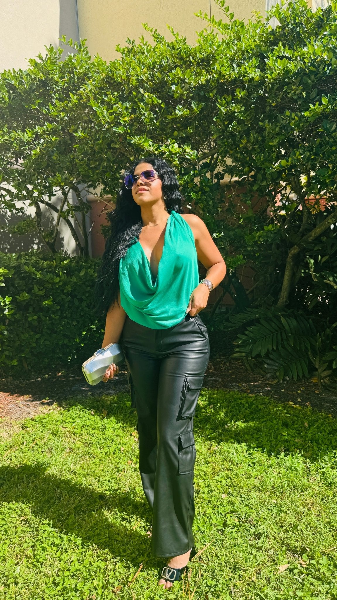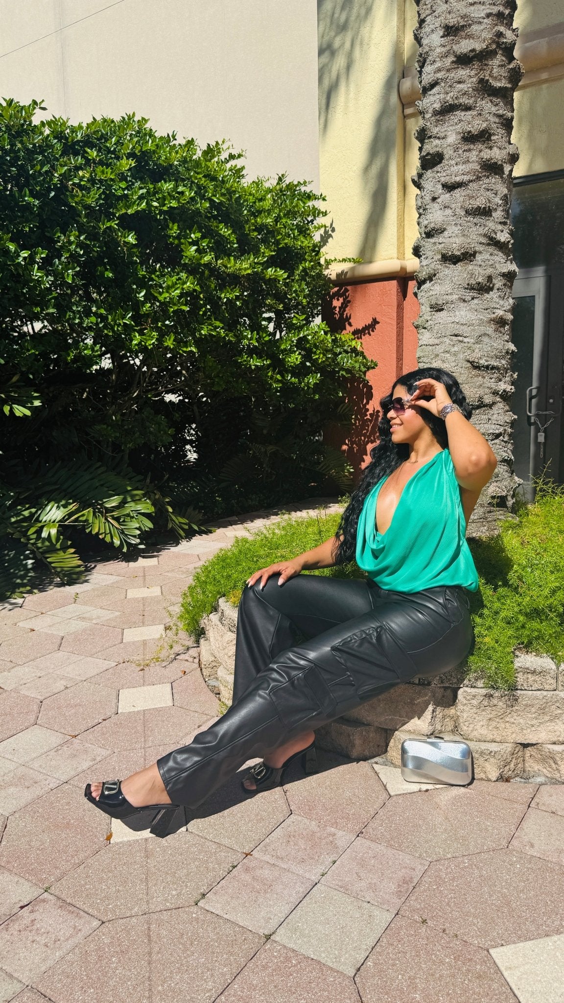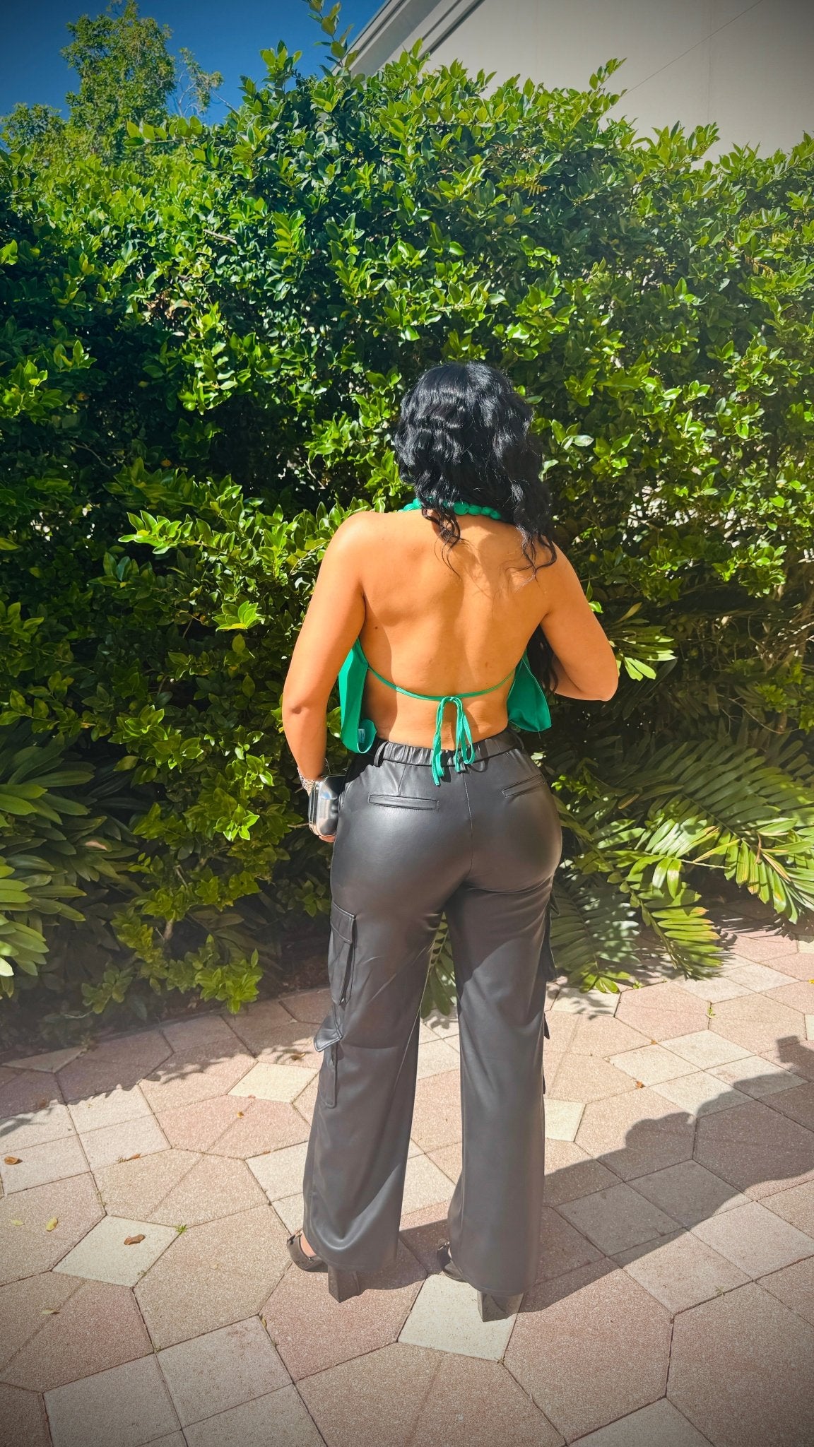 Elevate your street-chic style with our Luxe Utility Cargo Pants, designed for the modern woman who loves comfort with edge. Crafted from smooth faux leather with a soft interior finish, these pants feature a high-waisted silhouette, wide-leg cut, and multiple cargo pockets that add a bold, functional touch. The structured waistband and sleek lines create a flattering shape that pairs effortlessly with corsets, bodysuits, or cropped blazers for a statement-making look.