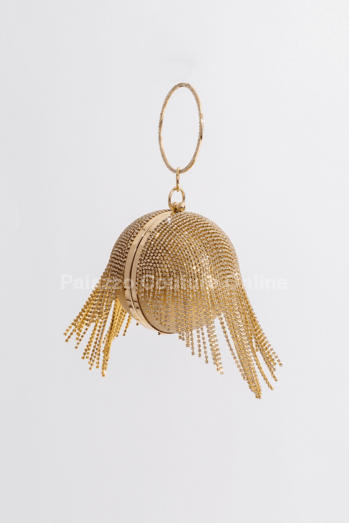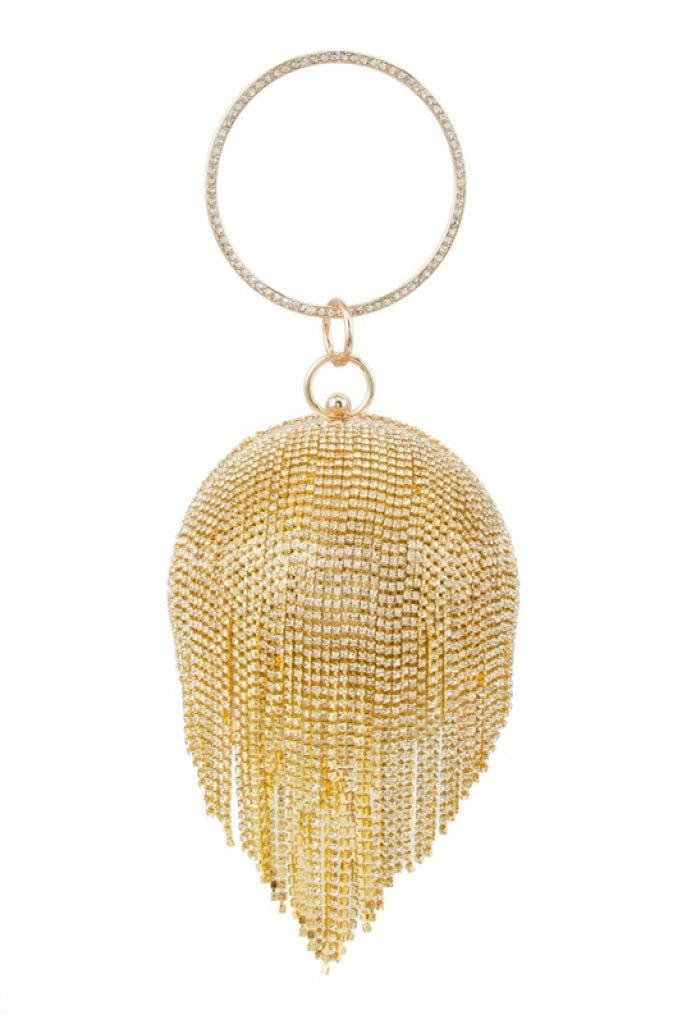 Full Rhinestone Fringe Ball Shape Clutch 5.5"(L) x 5.5"(W) x 5.5"(H)