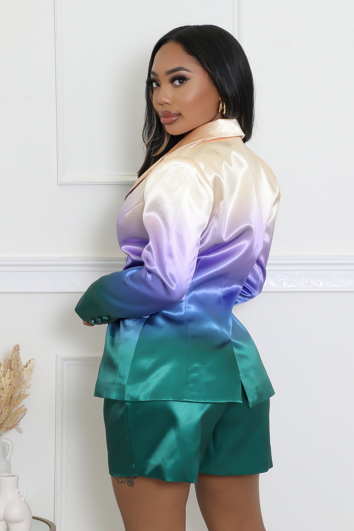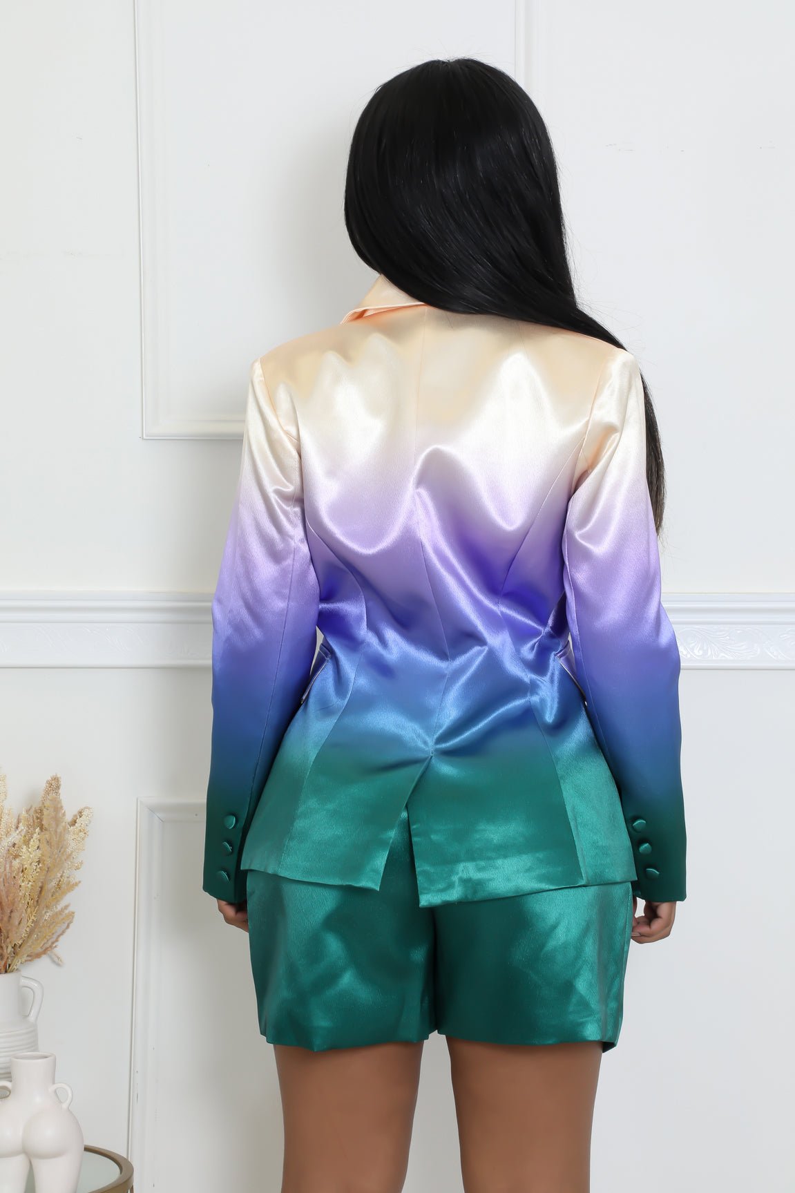 Introducing the Satin Sunset Short and Blazer Set, the perfect blend of sleek sophistication and effortless chic. Crafted from smooth satin, this coordinated set features a tailored blazer and matching high-waisted shorts, offering a stunning balance of structure and flow. Whether you're stepping out for a night on the town or making a bold daytime statement, this set is designed to turn heads with its luxurious sheen and modern silhouette.