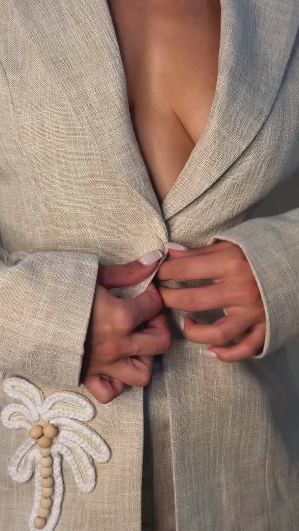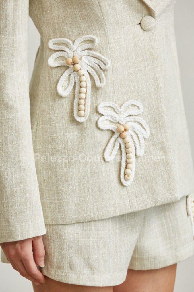 Palm Luxe Beaded Blazer & Short Set - Natural