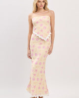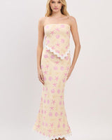 • Two-piece skirt set: wave-trim strapless top + mermaid skirt
