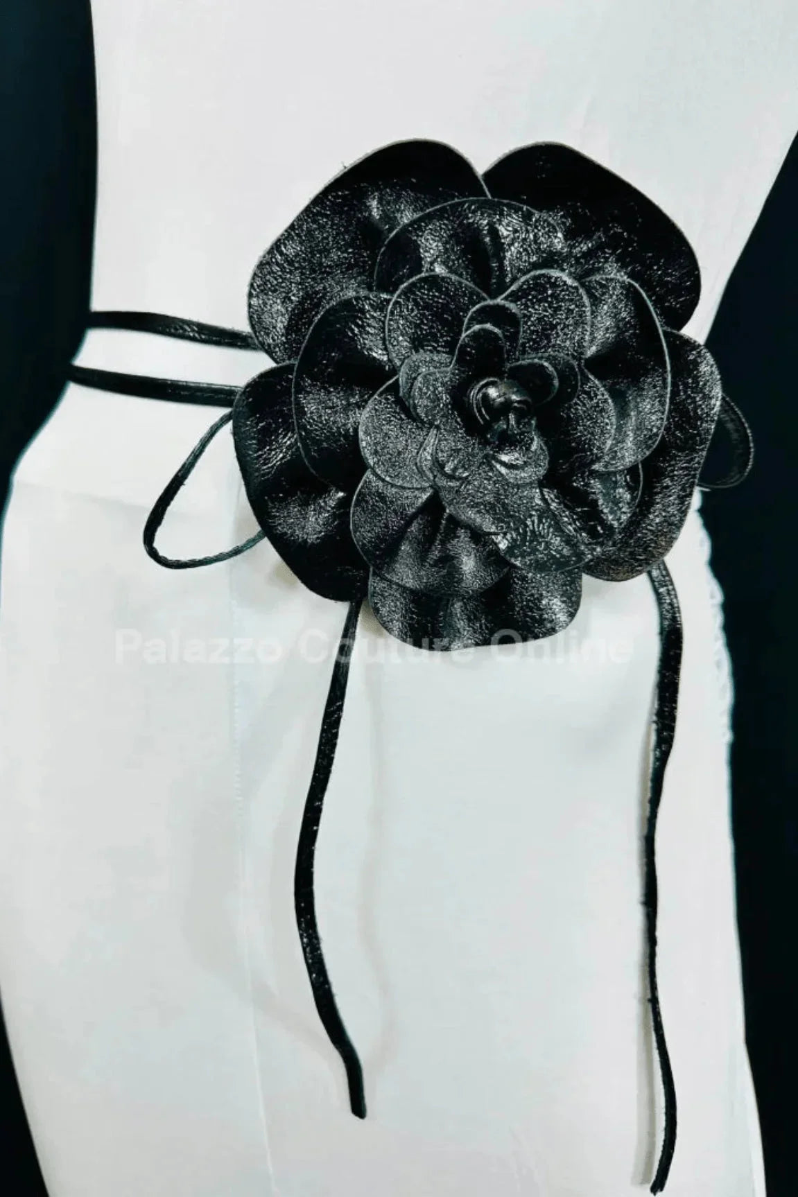 - Details Elevate your style with this versatile accessory crafted from high-quality leather The adjustable strap ensures a comfortable fit, while the oversized flower detail adds a stunning focal point Convertible from a wrap belt to a choker, this piece offers multiple styling options to enhance your ensemble with sophistication and charm Perfect for adding a touch of elegance to any outfit, the Floral Radiance Convertible Leather Wrap Belt & Choker is a must-have addition to your accessory collection Order ships within 24-48 hours or sooner (Monday-Friday) Styling Tips This leather wrap belt pairs beautifully with solid-colored matching sets and tops