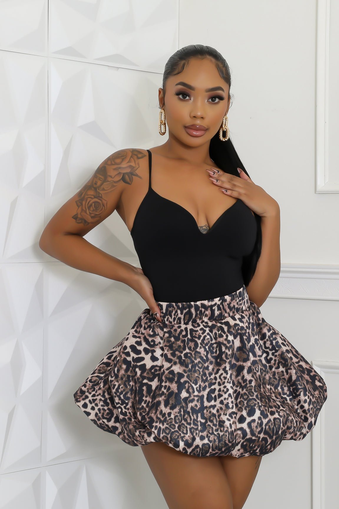 Pair this skirt with a sleek black bodysuit and thigh-high boots for a chic night-out look, or dress it down with a fitted top and heels for a more casual vibe. Whether you're prowling the city streets or dancing the night away, this bubble skirt will ensure all eyes are on you. Unleash your wild side with the On the Prowl Mini Skirt!