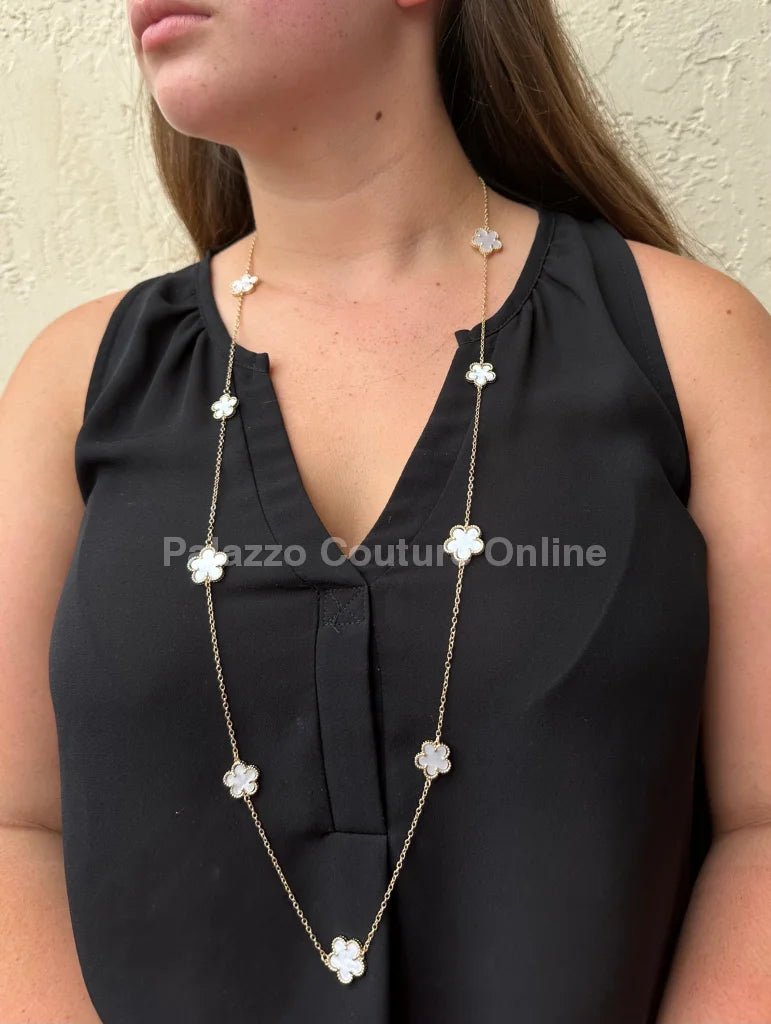 - A flower necklace for women who bloom. - This necklace is classic and elegant that women of all ages can enjoy them all day. - Perfect jewelry accessory to wear to match any outfit or occasion. - It suits for party, dating or daily life, makes you more charming and eye catching. - 4 or 5 -leaves clover represents health, love, wealth and happiness.