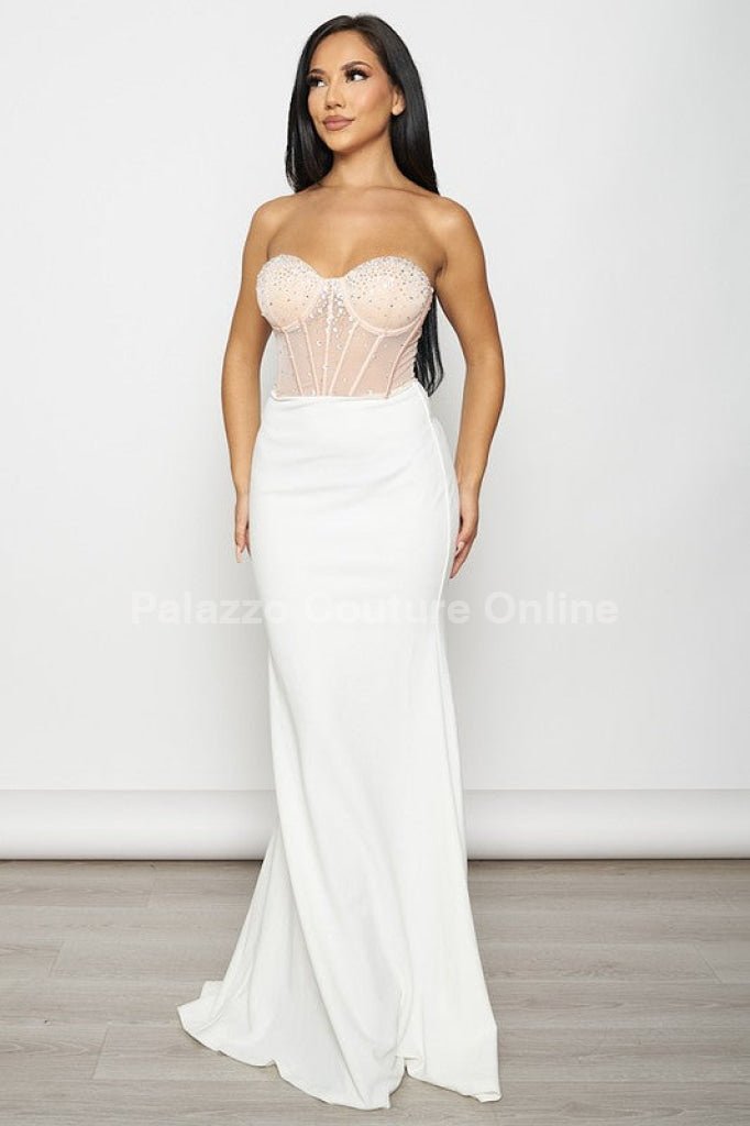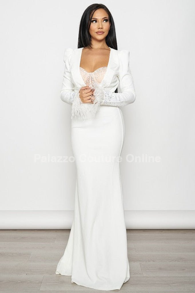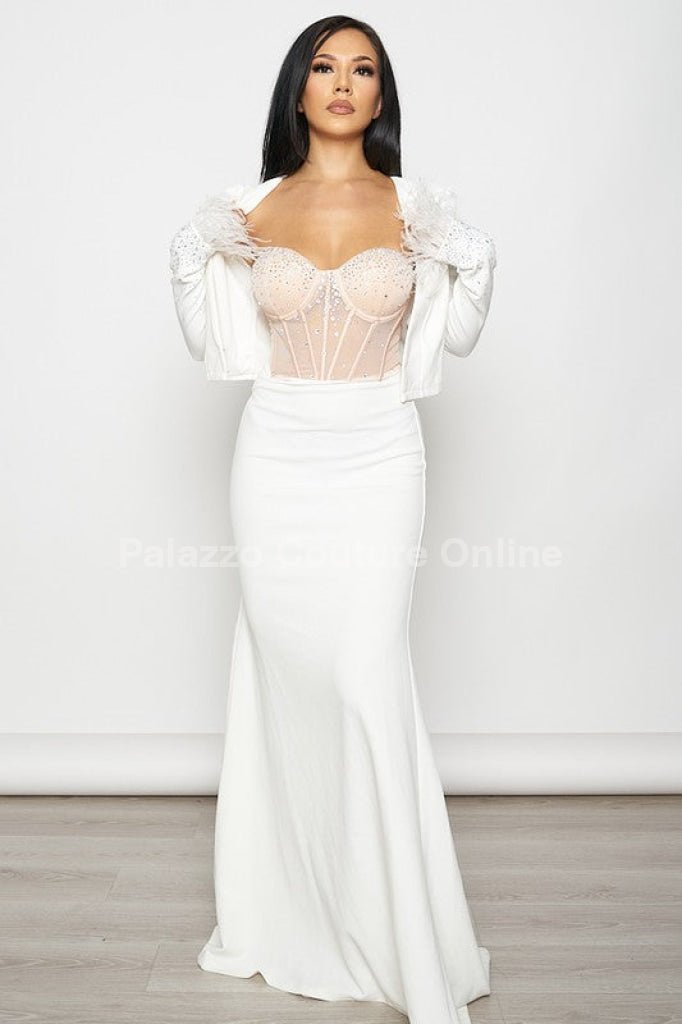 - 2pcs Set Corset Bodice Maxi Dress W/ Matching Long Sleeve Blazer
