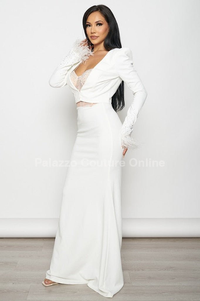 Glow Up 2 pcs Blazer & Maxi Dress Set (White)