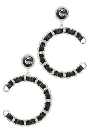Faux leather and chain braided hoop earrings. Approx. length 3.10".