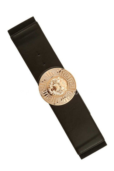 Lion Accent with Rhinestone Buckle Elastic Belt.