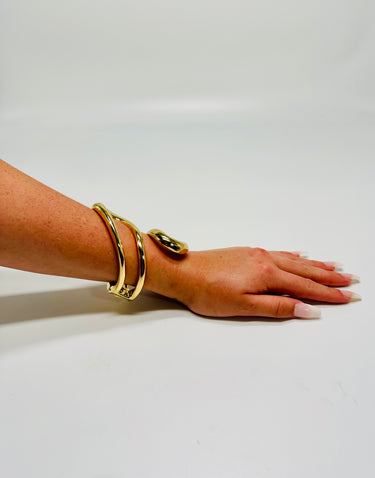 Gemini Wide Hinged Cuff Bangle (Gold)