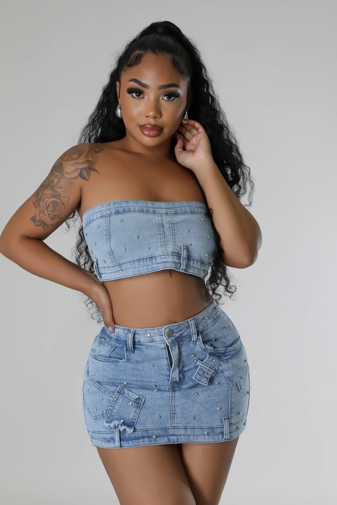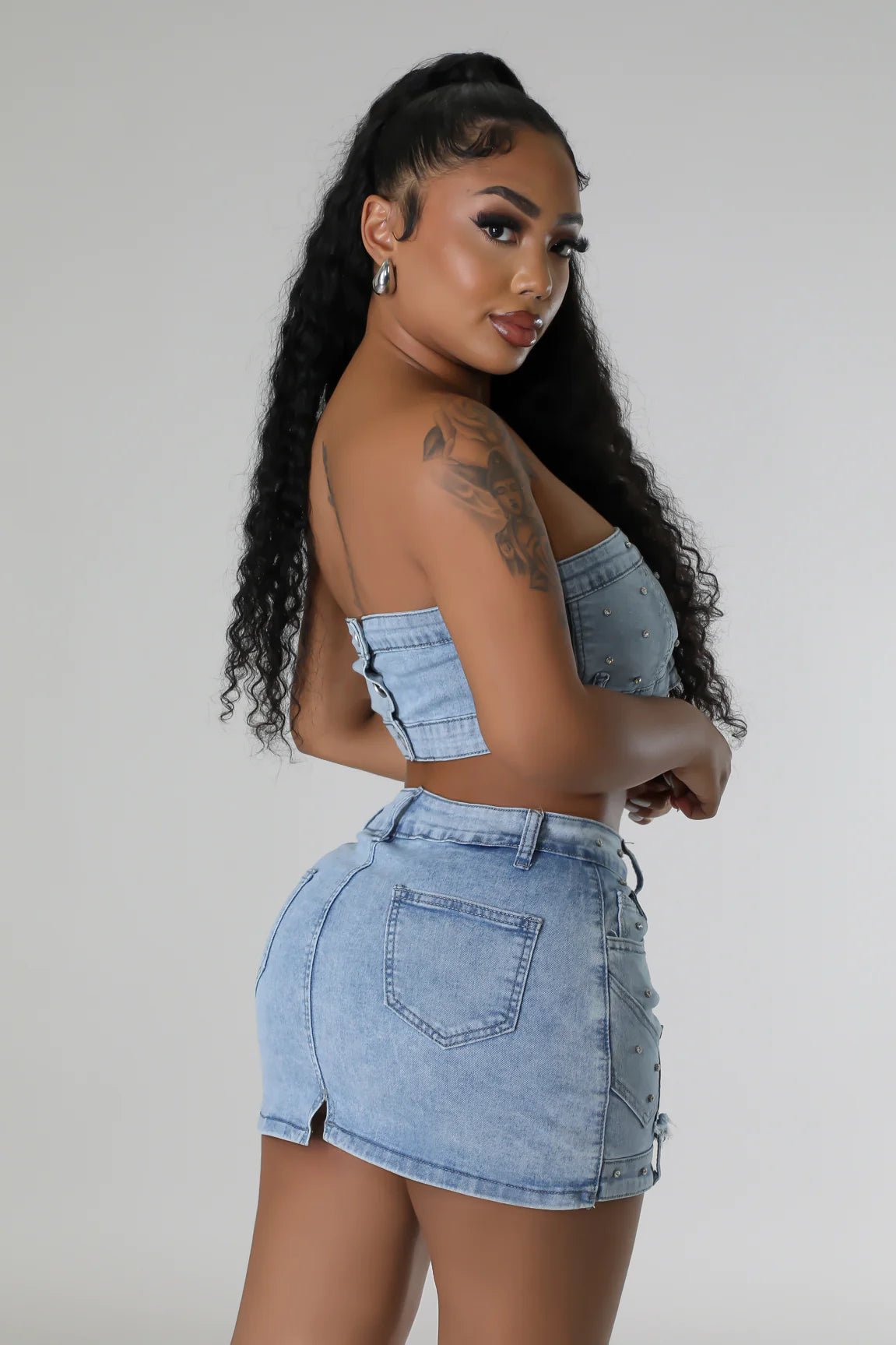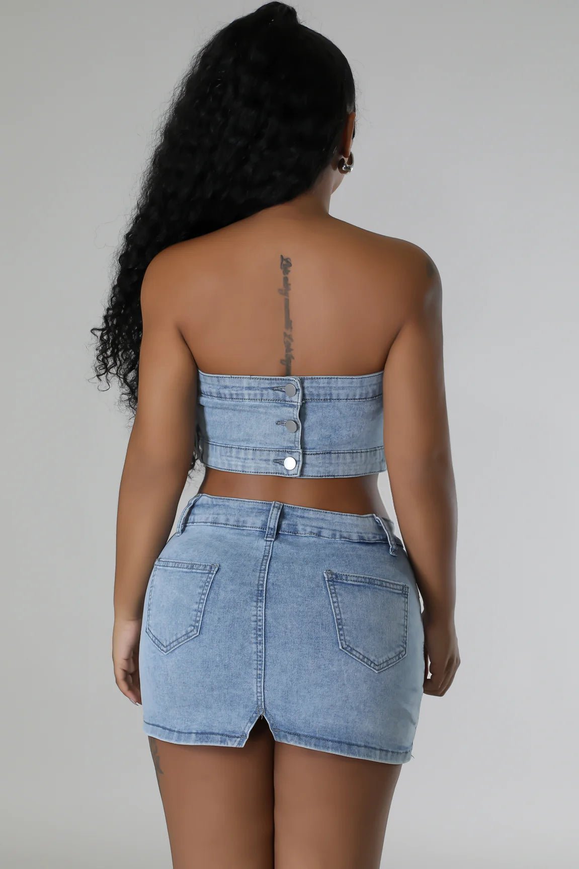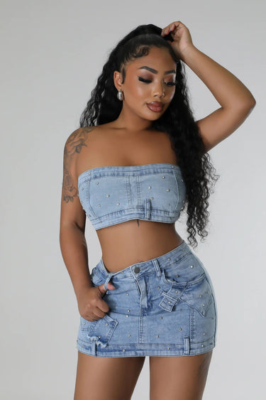 Pearlescent Denim Duo Skirt Set