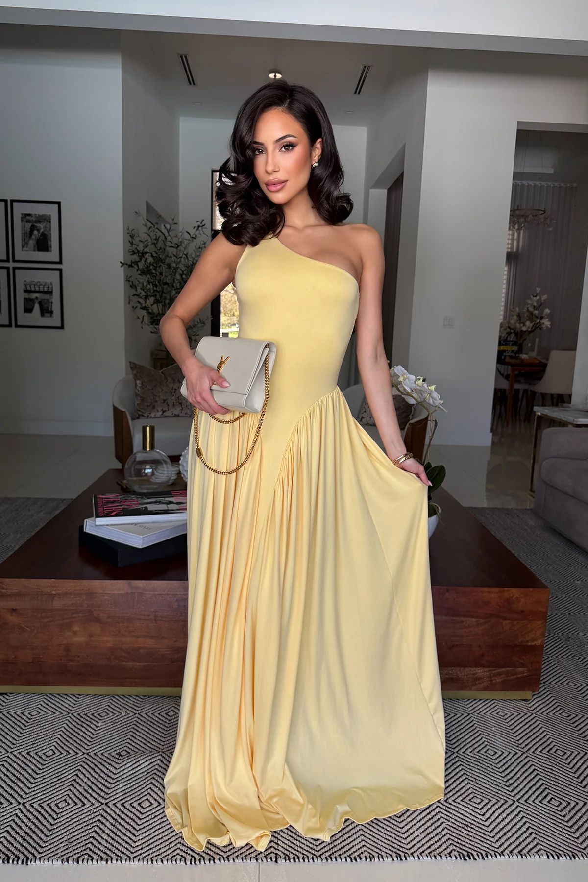 Ethereal One-Shoulder Flow Maxi Dress -Yellow