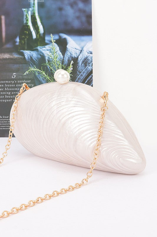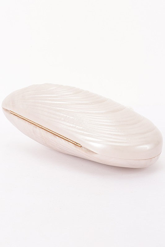 Elevate your evening look with this sculpted marble-inspired clutch designed to make a statement. Featuring a unique shell silhouette with a soft cream marble finish, this piece blends elegance and modern luxury effortlessly.