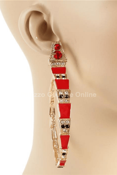 Fashion / Metal / Crystal / Snake / Earring / 3.6" Length / 2.9" Diameter / Earring / 18224