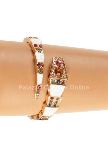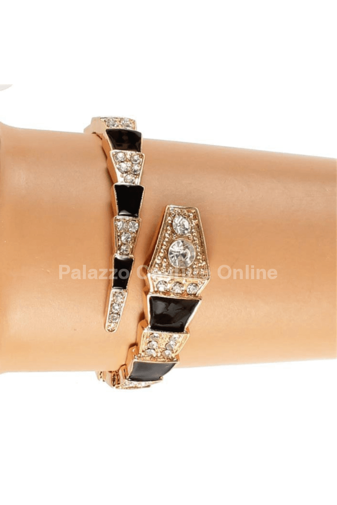 Fashion / Metal / Crystal / Snake / Cuff / Bangle / 3" Length / 2.75" Diameter / Bangle