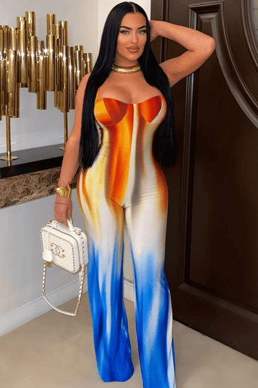 This chic jumpsuit stretches and fits very true to size. Model is wearing a small.