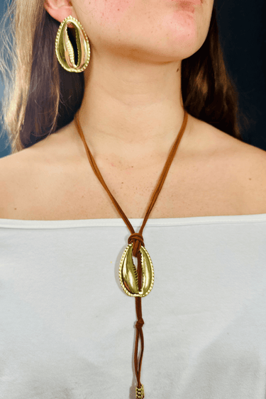 Embrace the spirit of bohemian elegance with our Boho Chic Shell Necklace and Earring Set. This set features a beautifully crafted pendant in the shape of a delicate shell, suspended from a soft, adjustable leather cord that allows for versatile styling. The matching earrings mirror the shell design, creating a cohesive and stylish look. Perfect for adding a touch of natural charm to your outfits, this set is ideal for both casual and dressy occasions.