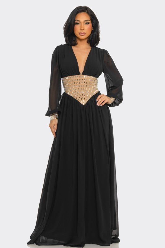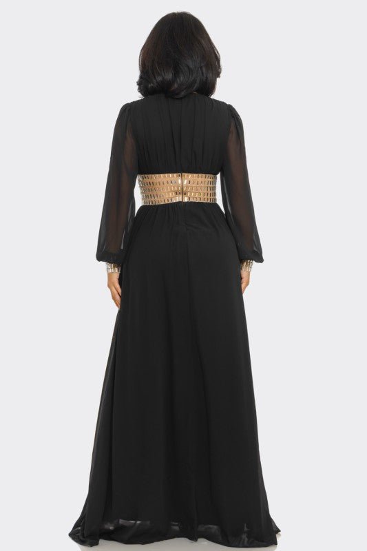 Golden Empress Belted Maxi Dress - Black