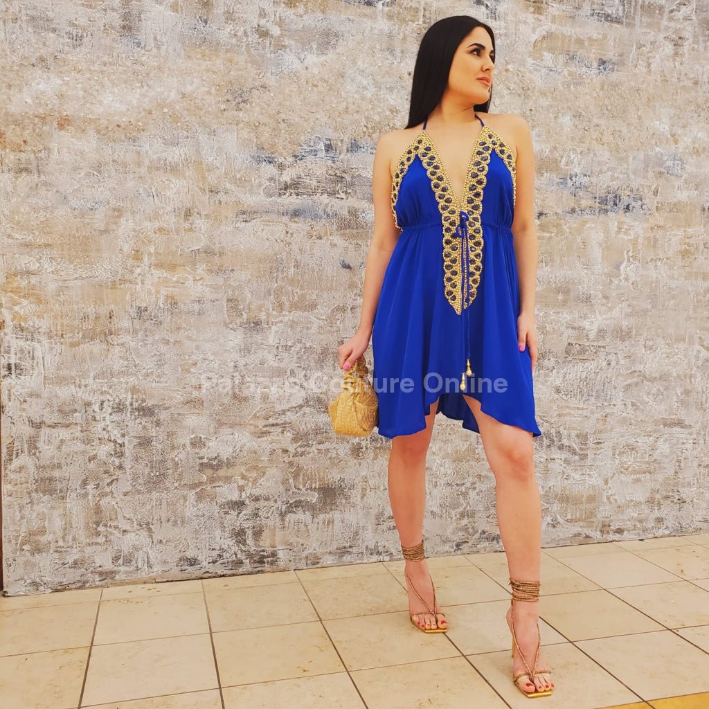 Halter Neck Premium Resort Mini Dress - Royal Blue