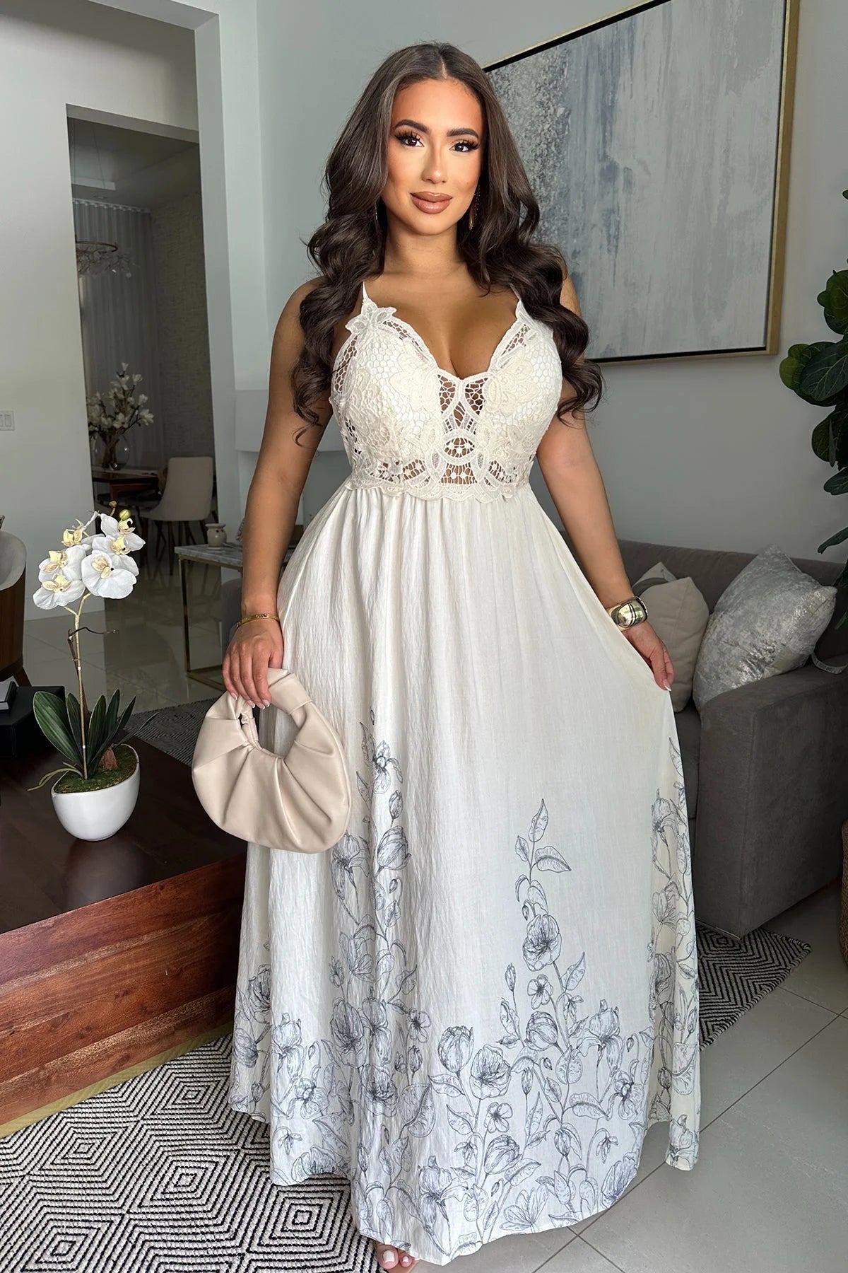 Command attention in the Boho Bloom Embroidered Maxi Dress - Natural. This breathtaking maxi dress features premium fabric with an elegant drape and a floor-sweeping silhouette — a head-to-toe statement piece designed to make every moment unforgettable.